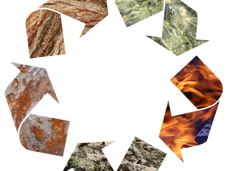 Ngũ hành thể hiện một chu trình khép kín: Mộc sinh Hỏa, Hỏa sinh Thổ, Thổ sinh Kim, Kim sinh Thủy, Thủy sinh Mộc,… tương tự như sự tuần hoàn của các mùa, các chu trình sinh địa hóa hay sinh quyển.